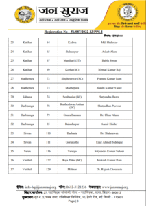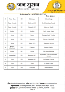 पार्टी के संस्थापक प्रशांत किशोर ने पटना में एक प्रेस कॉन्फ्रेंस में इस सूची की घोषणा की। उन्होंने कहा कि उम्मीदवारों का चयन योग्यता, सामाजिक प्रतिनिधित्व और पार्टी के साथ उनके योगदान के आधार पर किया गया है। हालांकि, प्रशांत किशोर का नाम इस सूची में शामिल नहीं है। सूत्रों के अनुसार, वे राघोपुर सीट से चुनाव लड़ सकते हैं, जहां राजद नेता तेजस्वी यादव हैट्रिक बनाने की कोशिश कर रहे हैं।