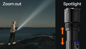 इसका आसान ज़ूम फ़ंक्शन आपको बीम को वाइड फ्लडलाइट से फोकस्ड स्पॉटलाइट में बदलने की सुविधा देता है। इसमें चार लाइटिंग मोड उपलब्ध हैं—हाई, मीडियम, लो और SOS। टॉर्च को तुरंत बंद करने के लिए पावर बटन को कुछ सेकंड तक दबाकर रखें।”